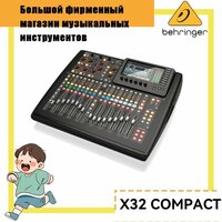 Цифровой микшер Behringer X32 COMPACT, представленный компанией Behringer на известной музыкальной выставке NAMM 2013, практически сразу же обратил на себя пристальное внимание профессионалов. Компактный цифровой микшер X32 COMPACT предлагает пользователям огромное количество входных каналов (40 каналов), 25 шин и шестнадцать программируемых микрофонных предусилителей Midas. Кроме этого, микшер беринджер Х32 компакт оборудован семью моторизованными фейдерами и шестнадцатью микрофонными входами с балансными разъемами XLR. Основной особенностью, которую отмечают производители микшера, являются его невероятно компактные размеры, которые делают его одним из самых компактных и функциональных устройств на современном рынке музыкального оборудования. Если Вы желаете купить компактный профессиональный микшер, Behringer X32 COMPACT предлагает оптимальное решение для туровых инсталляций и профессиональной работы в студии звукозаписи. Основные функциональные особенности микшерного пульта X32 COMPACT - Компактный цифровой микшер для профессиональных студий и концертных решений. - Семнадцать полностью автоматизированных 100-миллиметровых фейдеров, обеспечивающих полнофункциональный контроль всех параметров сцен и полное управление DAW. - Возможность практического использования сорока входных каналов и 25 шин. - Шестнадцать полностью программируемых микрофонных предусилителей MIDAS. - Восемь XLR-выходов и шесть дополнительных входов/выходов (линейные), два разъема для подключения наушников и секция talkback с интегрированным или внешним микрофоном. - Динамические и индивидуальные сенсорные жидкокристаллические полосы (LCD Scribble Strips) на каждом канале и шине. - Микшер оборудован аудиоинтерфейсом (32 x 32 канала), работающим посредством USB 2.0. и FireWire. - Полное управление DAW при помощи эмуляции консолей-контроллеров Mackie Control и HUI. - Жидкокристаллический, 7-ми дюймовый цветной экран высокого разрешения для комфортного просмотра всех рабочих компонентов и параметров системы. - Бесплатное ПО для iPad и iPhone, полный набор приложений для профессионального дистанционного управления, не требующие хост-компьютера. - Главный LCR, шесть матричных шин и все шестнадцать микс-шин оборудованы разъемами-инсертами. - Шестиполосные параметрические эквалайзеры и набор полной динамической обработки, включающий восемь DCA-групп и шесть mute-групп. - Виртуальный набор рэковых эффектов, представляющий восемь слотов стереоэффектов, включая профессиональные эффекты моделирования от Lexicon 480L, PCM70, EMT250, Quantec QRS. - DSP-процессор микшера основан на 40(ка)-разрядной обработке с плавающей запятой, обеспечивающей практически неограниченный динамический диапазон без перегрузок с низкой нулевой латентностью (0,8 млс.). - Полная поддержка 48(ми)-канального интерфейса Digital Snake через 2 порта AES50, использование возможностей сетевого SuperMAC от KLARK TEKNIK, что обеспечивает сверхнизкий уровень джиттера и латентности. - Интегрированный USB-разъем (тип «А») для записи несжатого звука и подключения внешних носителей, сохранения SHOW-пресетов и обновления ПО системы микшера. - Возможность дополнительного назначения секции управления для быстрой корректировки наиболее часто используемых параметров, назначение «горячих клавиш» для часто используемых операций. - Полная поддержка ULTRANET для коммутации с системам мониторинга Behringer P-16. - Дополнительный