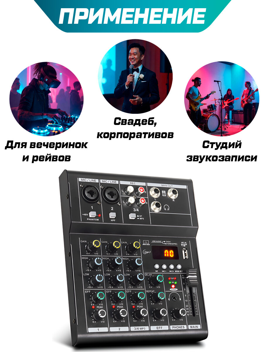 Купить Микшерный пульт с bluetooth, 4 канала, фантомное питания 48В / Микшер с доставкой по всей России. Микшерный пульт с bluetooth, 4 канала, фантомное питания 48В / Микшер: сравнение цен, характеристики, фото, актуальное наличие и цены.