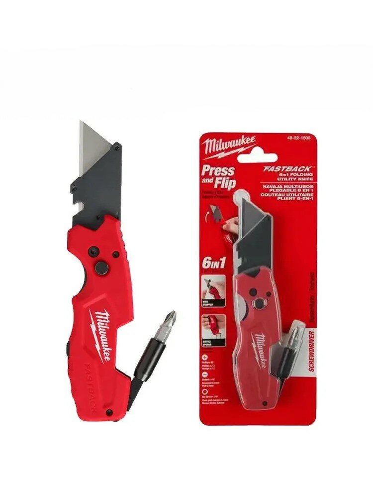 Купить Нож складной Milwaukee 48-22-1505 FASTBACK, 6в1, + складная отвертка и держатель бит с доставкой по всей России.