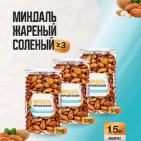 Купить Миндаль жареный соленый 1,5 кг (3 банки по 500 гр), Страна Полезных Продуктов, Банка с доставкой по всей России.