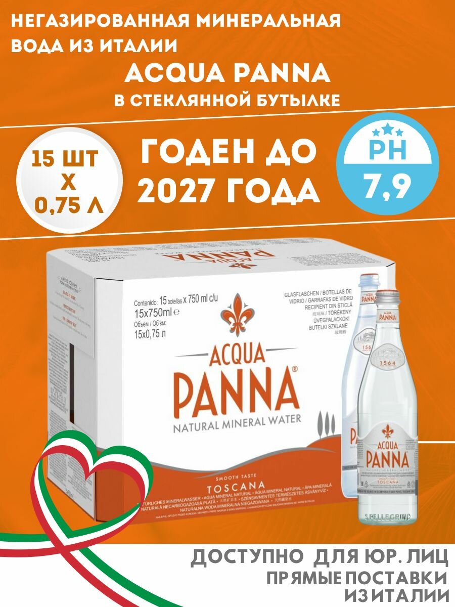 Купить Acqua Panna 15 шт.*0.75 л / Аква Панна, стеклянная бутылка, негазированная минеральная вода Италия с доставкой по всей России.