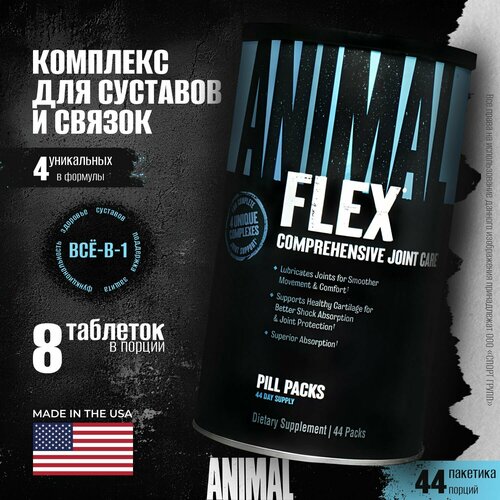 Animal Flex помогает укрепить суставы и связки, защищая их от ежедневного износа, вызванного интенсивными тренировками, независимо от вида спорта. Ингредиенты Animal Flex могут помочь поддерживать здоровую функцию суставов, эластичность и гибкость с помощью активных ингредиентов, которые обеспечивают основные строительные блоки, необходимые для поддержания структурной целостности человека, чтобы сохранить фундамент вашего тела крепким.