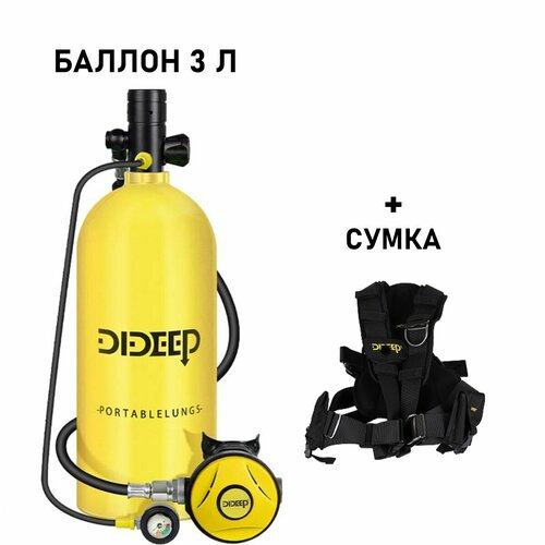до 30 минут под водой! Емкость мини баллона DIDEEP для дайвинга 3 л. При полной загрузке выдает под водой до 280 вдохов. Погружение составляет от 20 до 30 минут в зависимости от глубины, температуры воды, и частоты дыхания.