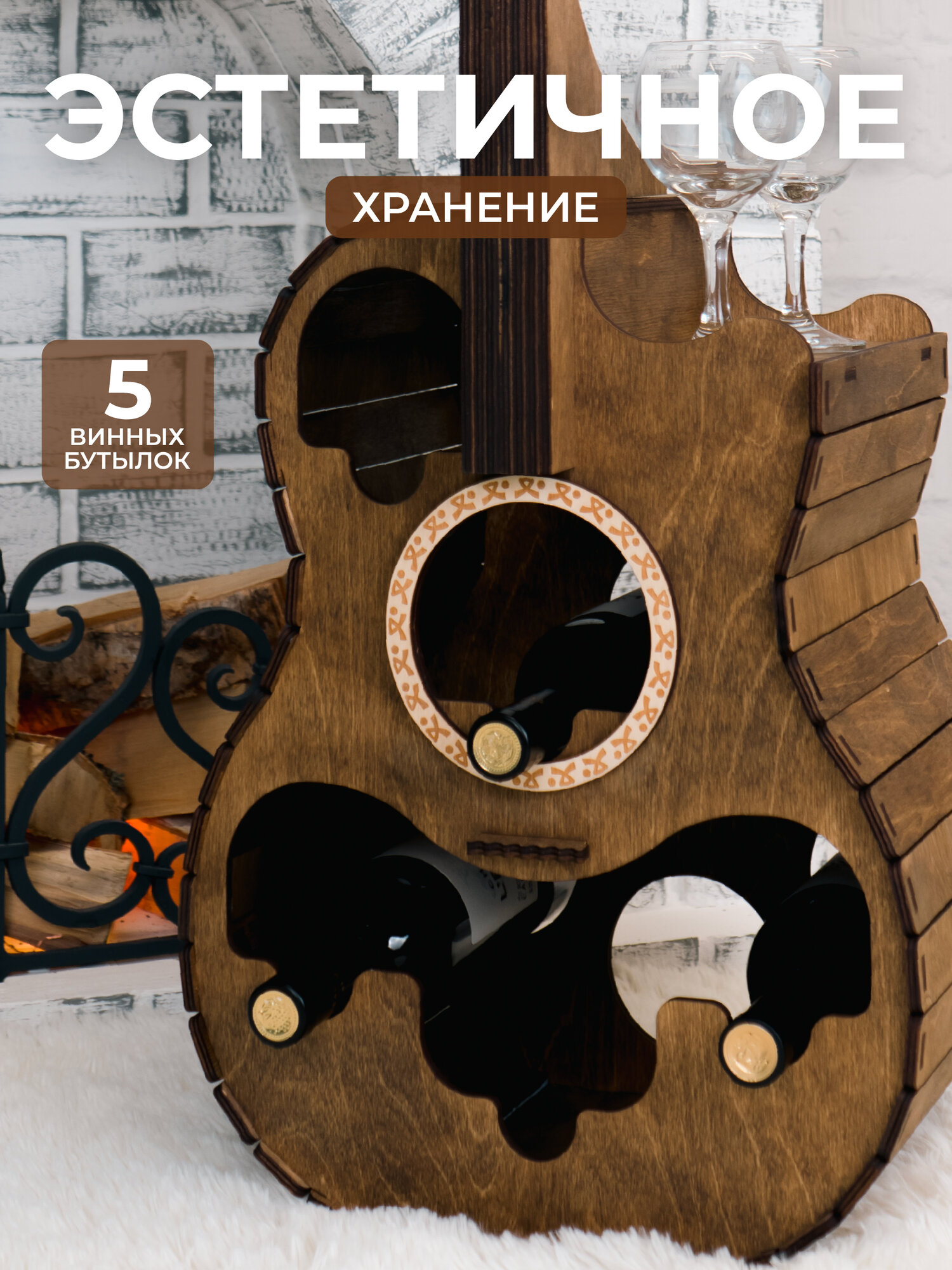 Напольный мини-бар в форме гитары — это эффектная винная подставка, которая вмещает 5 бутылок вина или крепких напитков. Он сочетает в себе функцию практичного хранения и стильного декора для кухни, гостиной, бара или дачи.