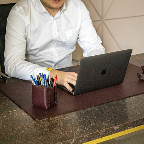 Мини-бювар, большой коврик для компьютерного стола из кожи, Ogmore by Audmorr, Размер — 30 х 50 см, натуральная кожа, виски