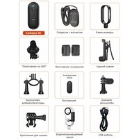 1x белая мини-камера 1080P 1x большое количество спортивных аксессуаров 1x магнитный кулон 1x водонепроницаемая оболочка 1x зажим для спины 1x TF-карта 64 ГБ