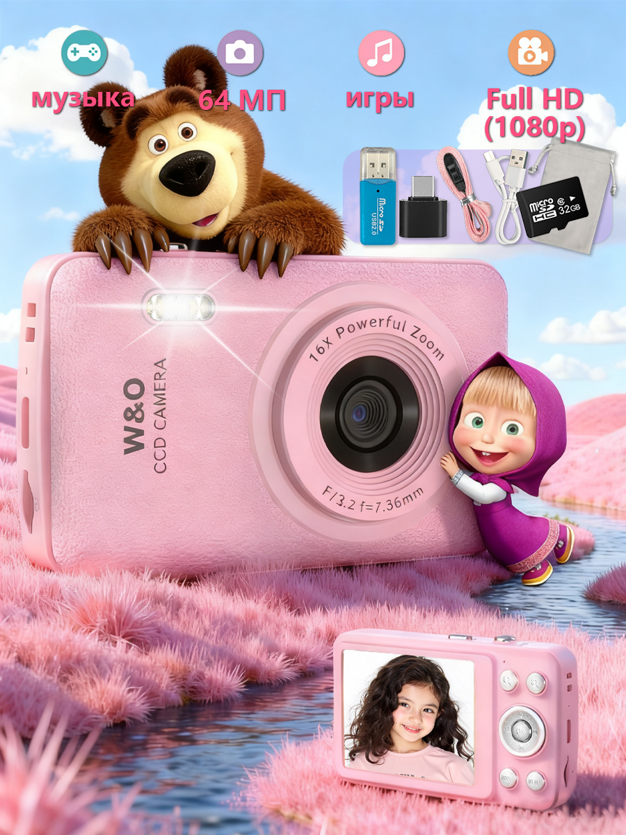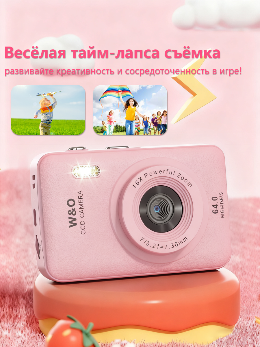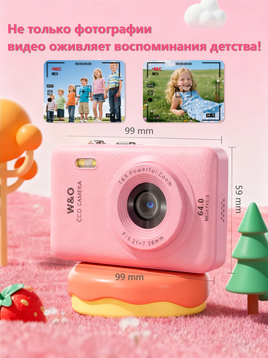 Мини-фотоаппарат W&O Q3, с матрицей 64 МП, влагозащищённый, розовый: сравнение цен, характеристики, фото, актуальное наличие и цены.