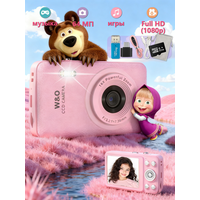 Купить Мини-фотоаппарат W&O Q3, с матрицей 64 МП, влагозащищённый, розовый с доставкой по всей России.