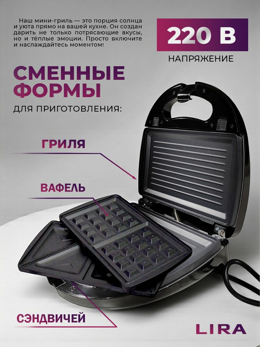 Мини-гриль 3 в 1 LIRA LR 1302 silver мультипекарь: сравнение цен, характеристики, фото, актуальное наличие и цены.