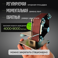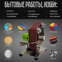 Полировальная машинка позволит намного быстрее и эффективнее достичь желаемого результата. При необходимости мини гриндер ленточный можно дооснастить и приспособить к нему полировальный или шлифовальный круг. Эти приспособления крепятся с помощью отверстия с резьбой на ведущем вале. Также ленточная шлифмашинка может быть оснащена зажимным патроном, который даст возможность использовать фрезу, сверло, или надежно зажать заготовку. А ещё, заточной станок можно оснастить точильным камнем, который так же расширит функционал данного станка.