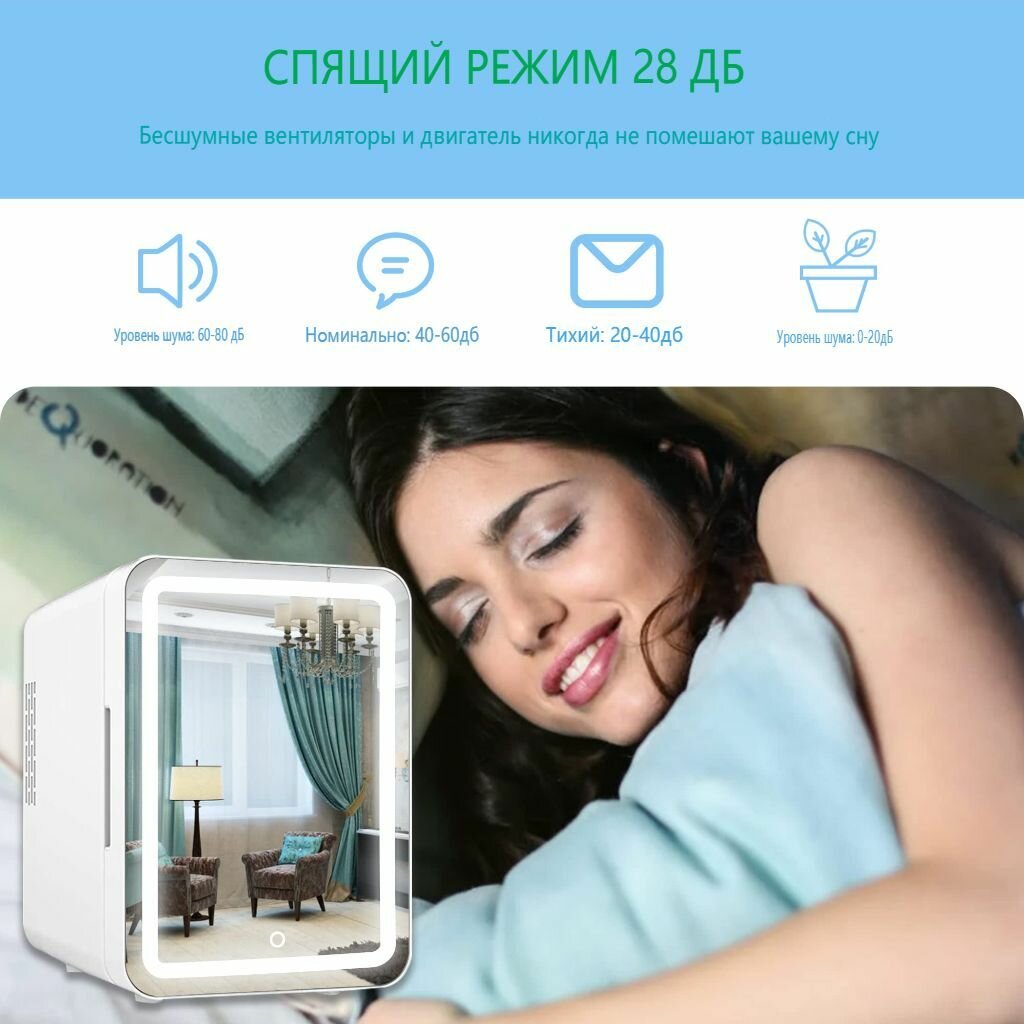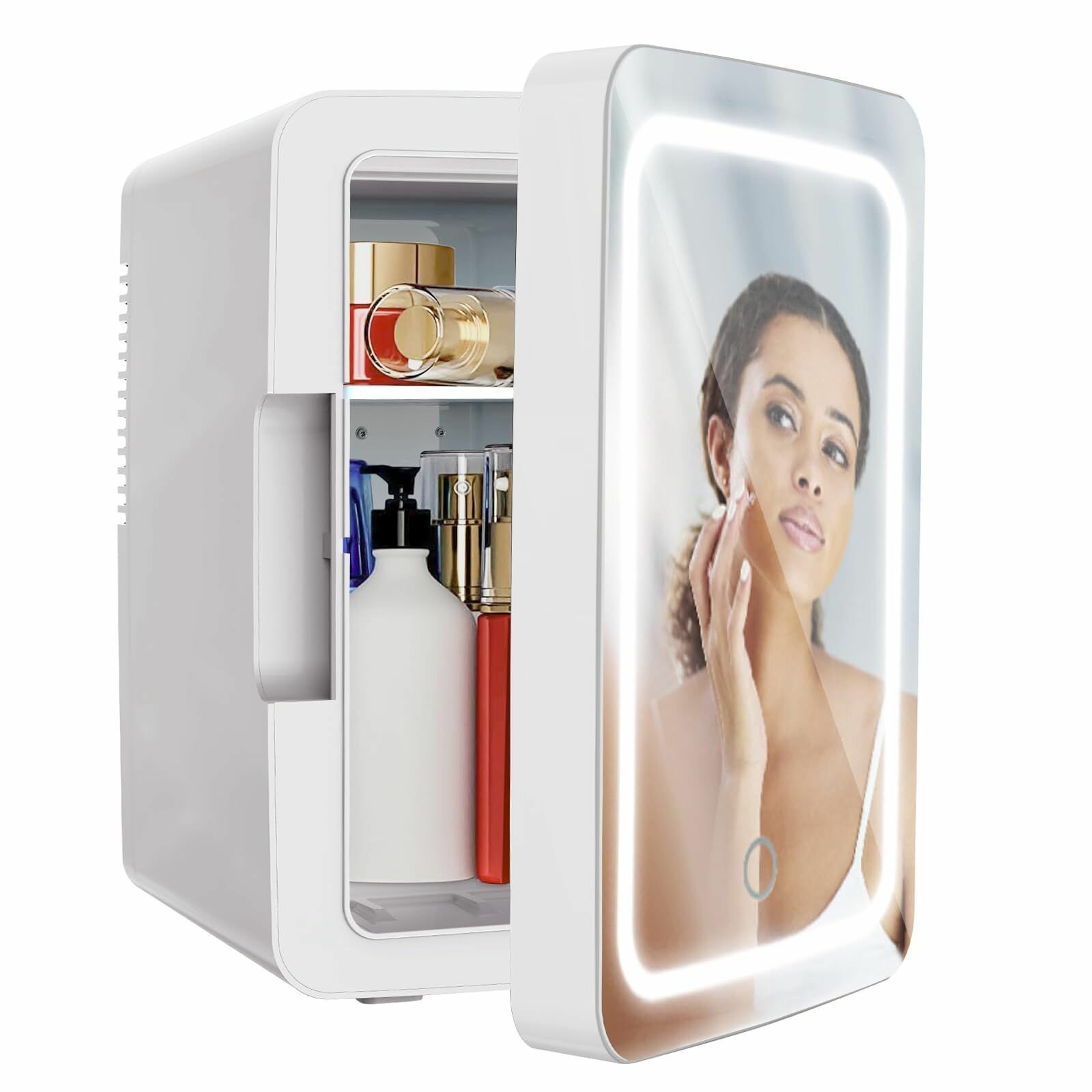 Купить Мини холодильник для косметики, с зеркалом со светодиодной подсветкой, регулируемая яркость, для охлаждения косметики и продуктов питания, для спален, офисов и автомобилей, белый, 6 литров с доставкой по всей России.