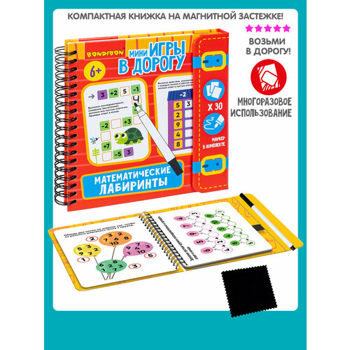 Порадуйте своего ребенка мини игрой математические лабиринты 1 со стирающимся маркером от Bondibon! Дети не смогу оторваться от красочной и динамичной головоломки в дорожном формате со множеством веселых заданий на сложение и вычитание! Листайте удобную книжку и выбирайте любую из тридцати карточек с красочными рисунками. Прочитайте задание. Впишите ответы в клеточки стирающимся маркером. Пробуйте находить различные варианты решения, не боясь ошибиться. Стирать ответы и выполнять задания можно сколько угодно раз. Складывайте, вычитайте и ищите зашифрованные числа! Игра математические лабиринты 1 развивает интеллектуальные способности, логику и внимание у детей. В непринужденной форме подготовьте ребенка к школе. В комплект входят: 30 страниц с заданиями, стирающийся маркер и салфетка. Возраст 6+ Забудьте о скучных путешествиях вместе с замечательными мини играми в дорогу от Бондибон! Красочные и компактные, они помогут провести время весело и с пользой!