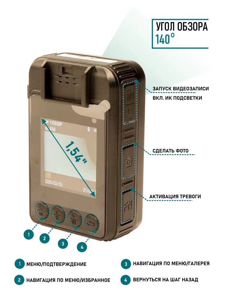 Нагрудный видеорегистратор надежно фиксируется на одежде, что обеспечивает максимальную мобильность и удобство в использовании. Вы можете с легкостью пристегнуть его к куртке или предметам гардероба, не ощущая дискомфорта.