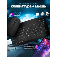 Купить Мини клавиатура и мышь, беспроводная клавиатура и мышь, для компьютера, для планшета, комплект 2 в 1, bluetooth, русская раскладка, черный с доставкой по всей России.