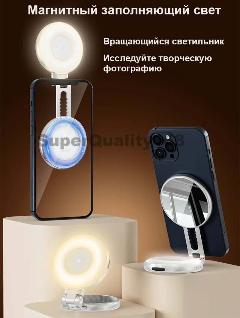 Купить Мини-лампа-осветитель с магнитным креплением, 3 цветовые температуры, регулировка яркости, для iPhone 16/15/14/13/12 с доставкой по всей России. Мини-лампа-осветитель с магнитным креплением, 3 цветовые температуры, регулировка яркости, для iPhone 16/15/14/13/12: сравнение цен, характеристики, фото, актуальное наличие и цены.