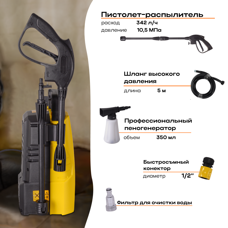 Мини-мойка HUTER W105-Р, 1400 Вт, 105 Бар, 342 л/ч, шланг – 5 м, подача воды: водопровод/емкость: сравнение цен, характеристики, фото, актуальное наличие и цены.