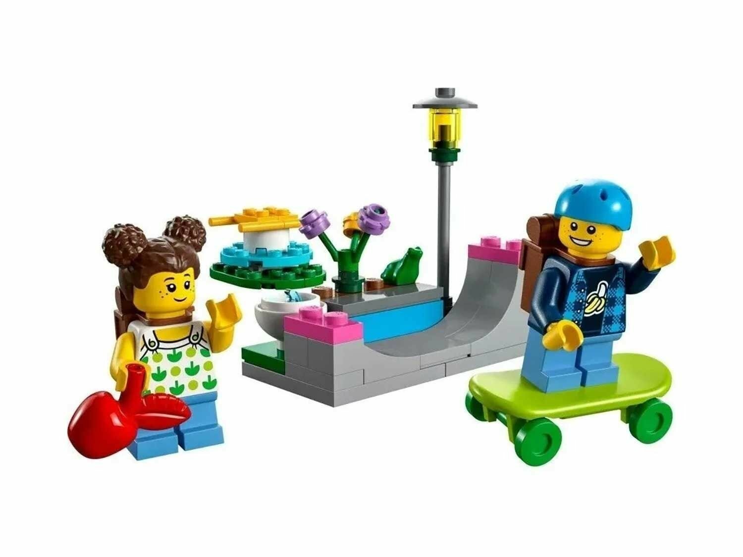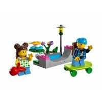 Развлекайтесь на детской игровой площадке с клумбой, фонтанчиком и рампой для скейта из набора LEGO City Kids' Playground (30588). Минифигурки девочки и скейтера помогут детскому воображению разыгрывать самые веселые приключения.