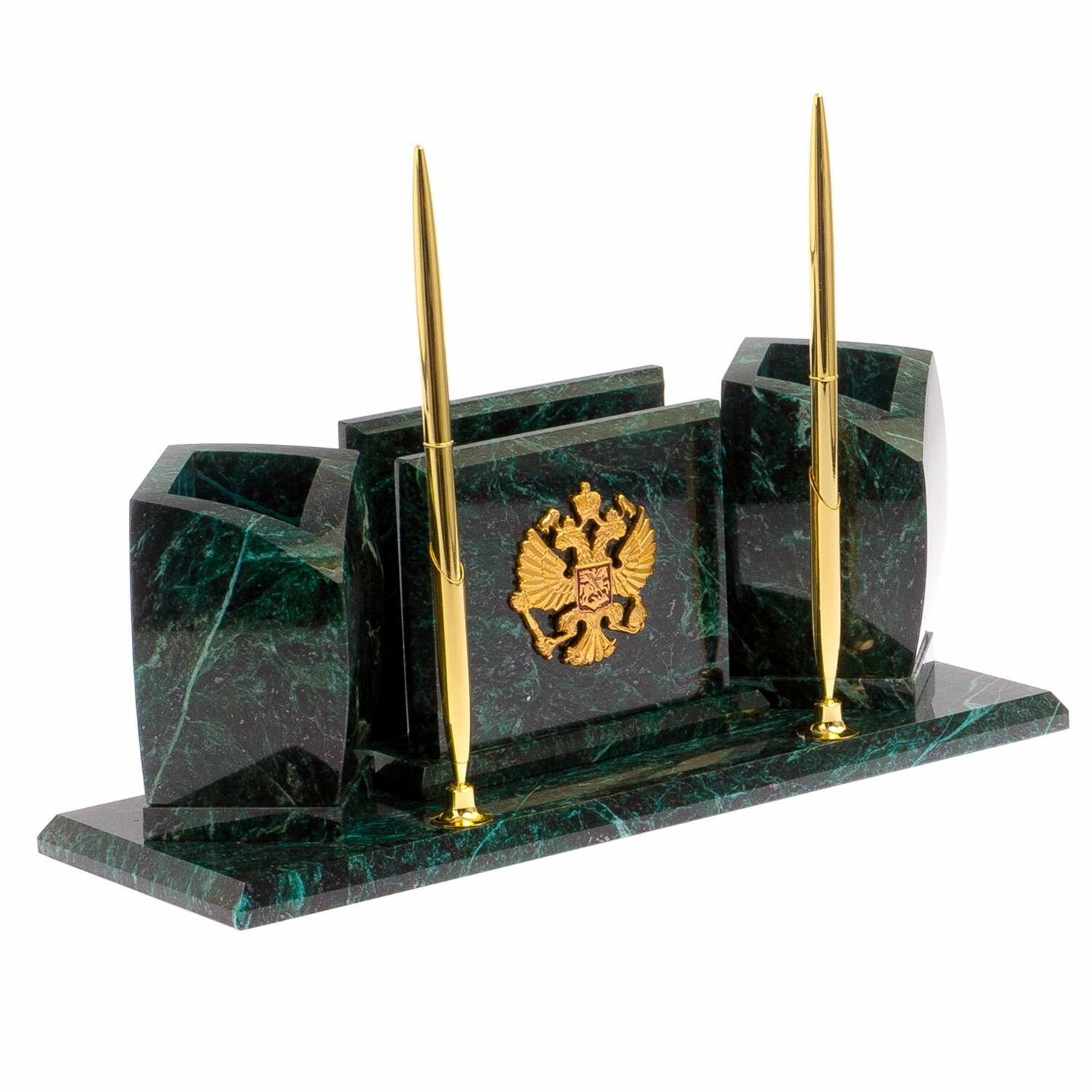 Мини-набор с гербом РФ камень змеевик размером 30х10х11,5 см и весом 2500 г.