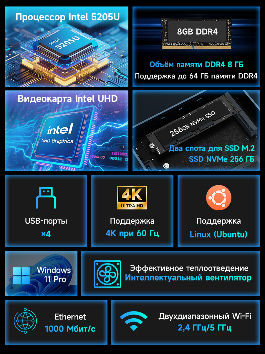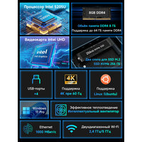 Купить Mini Pc BMAX B2 POWER, Intel Celeron Processor 5205U, RAM 8 ГБ, SSD 256 ГБ, Intel UHD Graphics , Windows 11 Pro, Чёрный с доставкой по всей России.