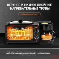 Купить Мини печь 3 в 1 с кофеваркой, машина для приготовления завтрака, мультиварка-скороварка электрическая духовка + кофеварка + гриль, духовка электрическая настольная с доставкой по всей России.