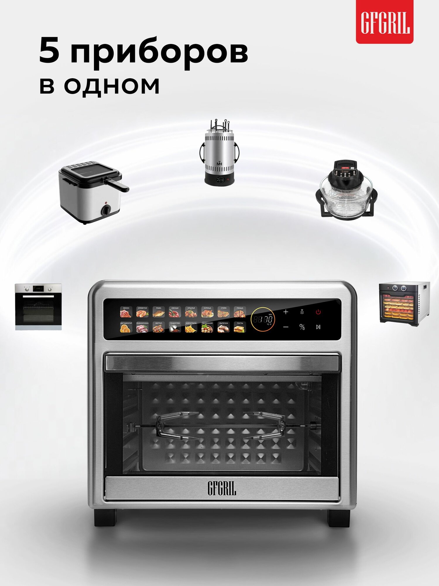 Мини-печь аэрогриль GFGRIL GFAO-800-silver, 23 л: сравнение цен, характеристики, фото, актуальное наличие и цены.
