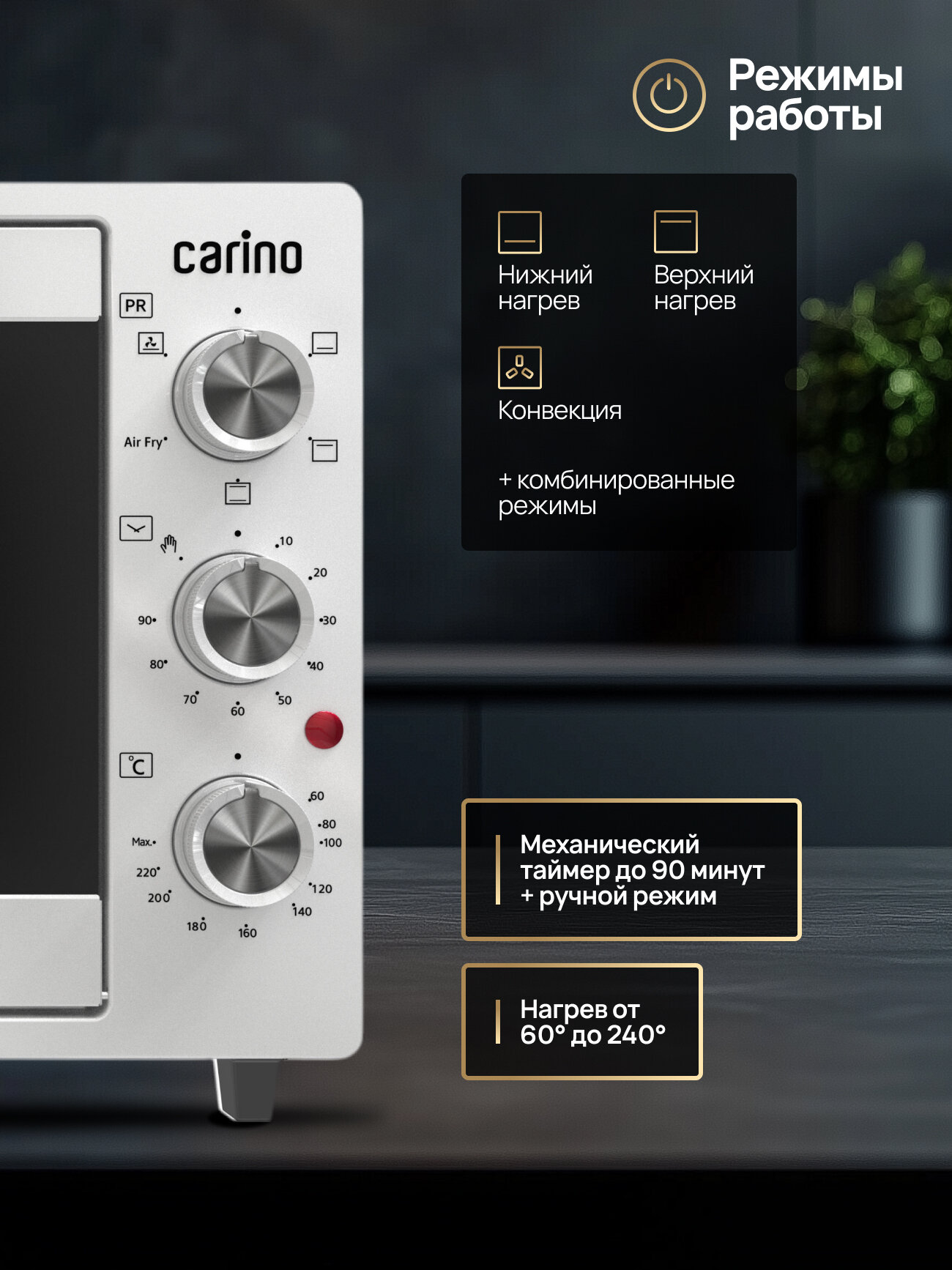 Купить Мини-печь CARINO CM3875, 5 режимов, 38л, AIR FRY конвекция, 1500 Вт, подсветка с доставкой по всей России.