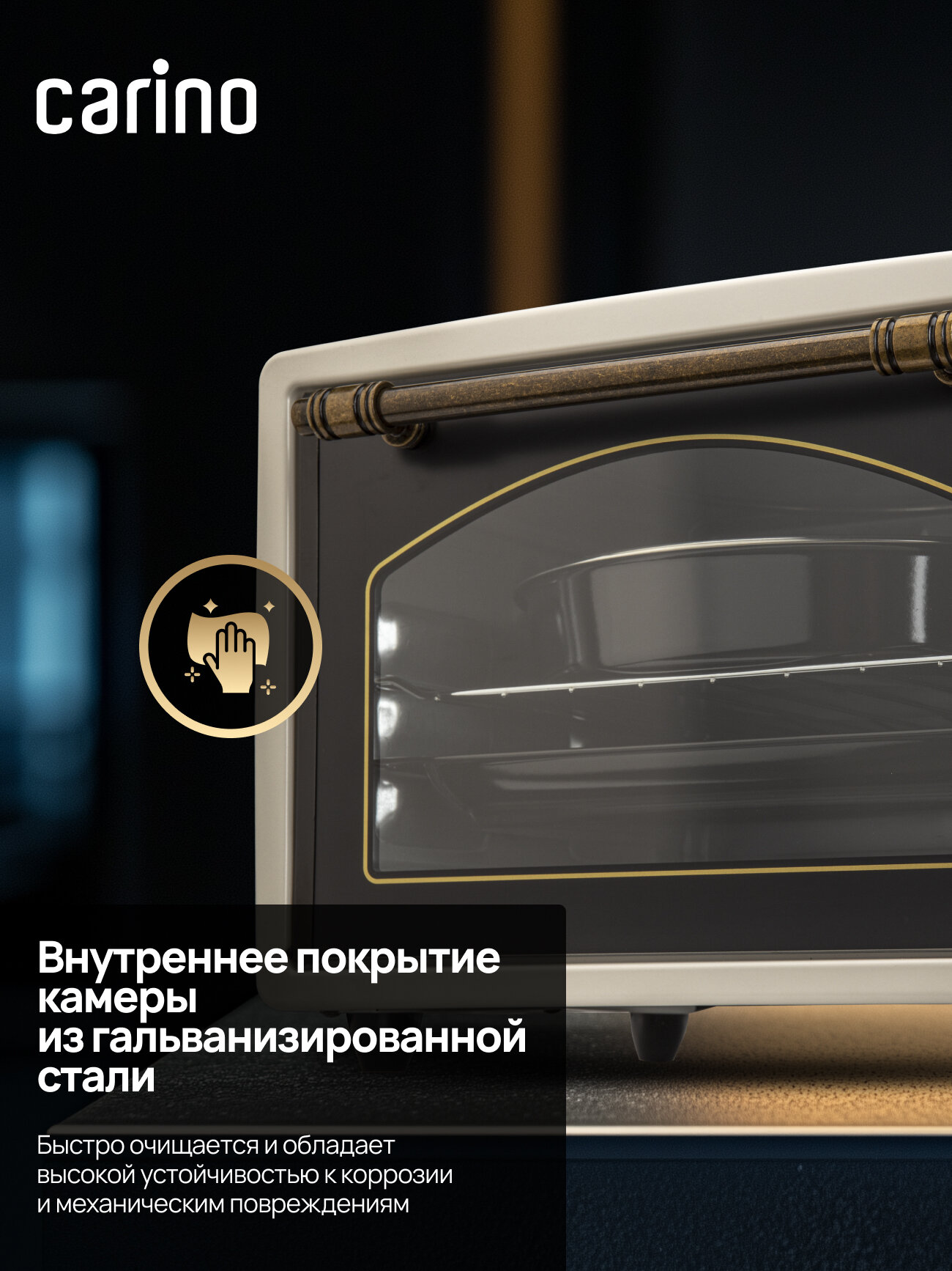 Вместимость и мощность: с внутренним объемом 34 литра и мощностью 1300 Вт, CARINO M3417 способна справиться с любыми кулинарными задачами.