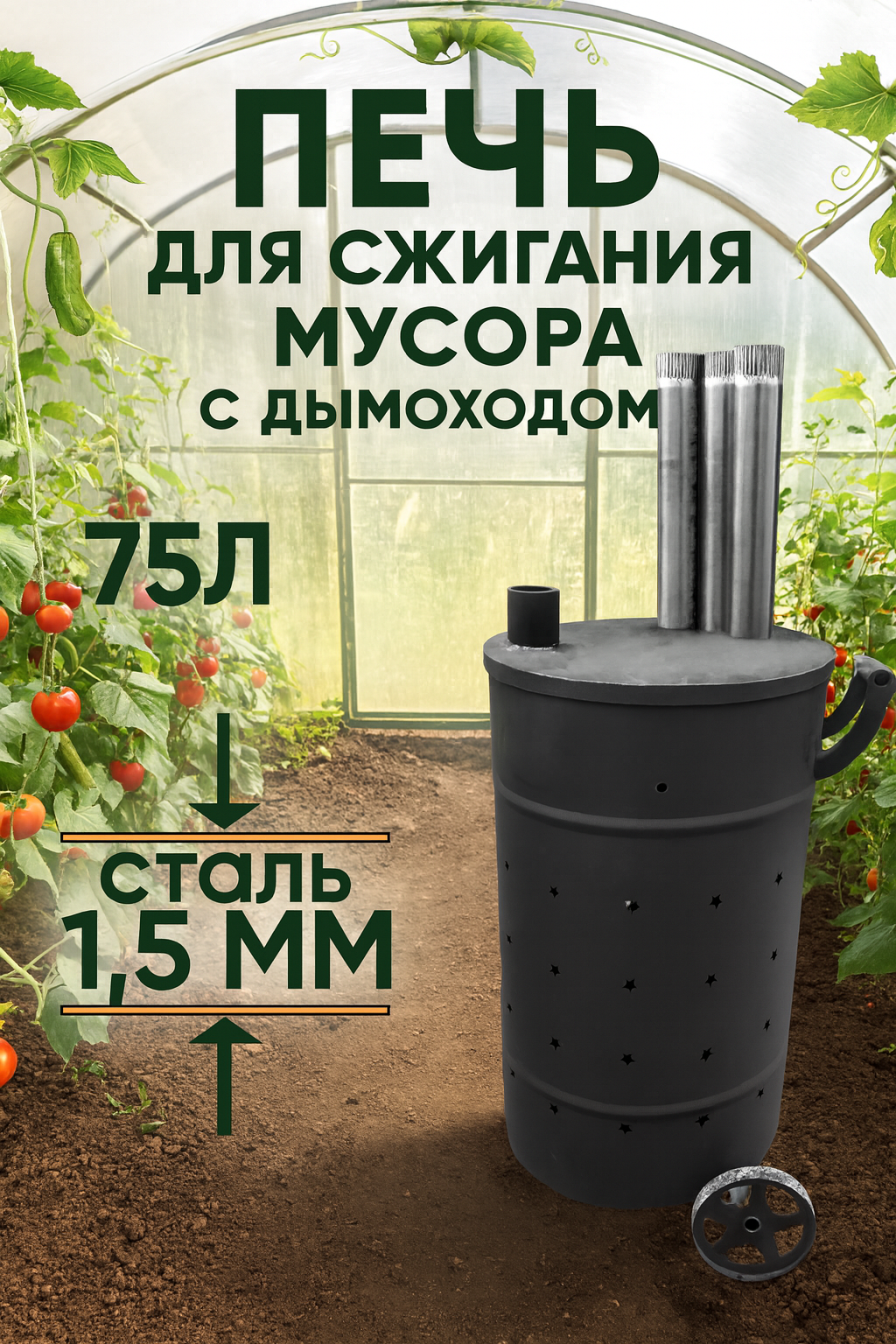 Купить Мини Печь для сжигания мусора с дымоходом 75л, толщина 1,5мм с доставкой по всей России. Мини Печь для сжигания мусора с дымоходом 75л, толщина 1,5мм: сравнение цен, характеристики, фото, актуальное наличие и цены.