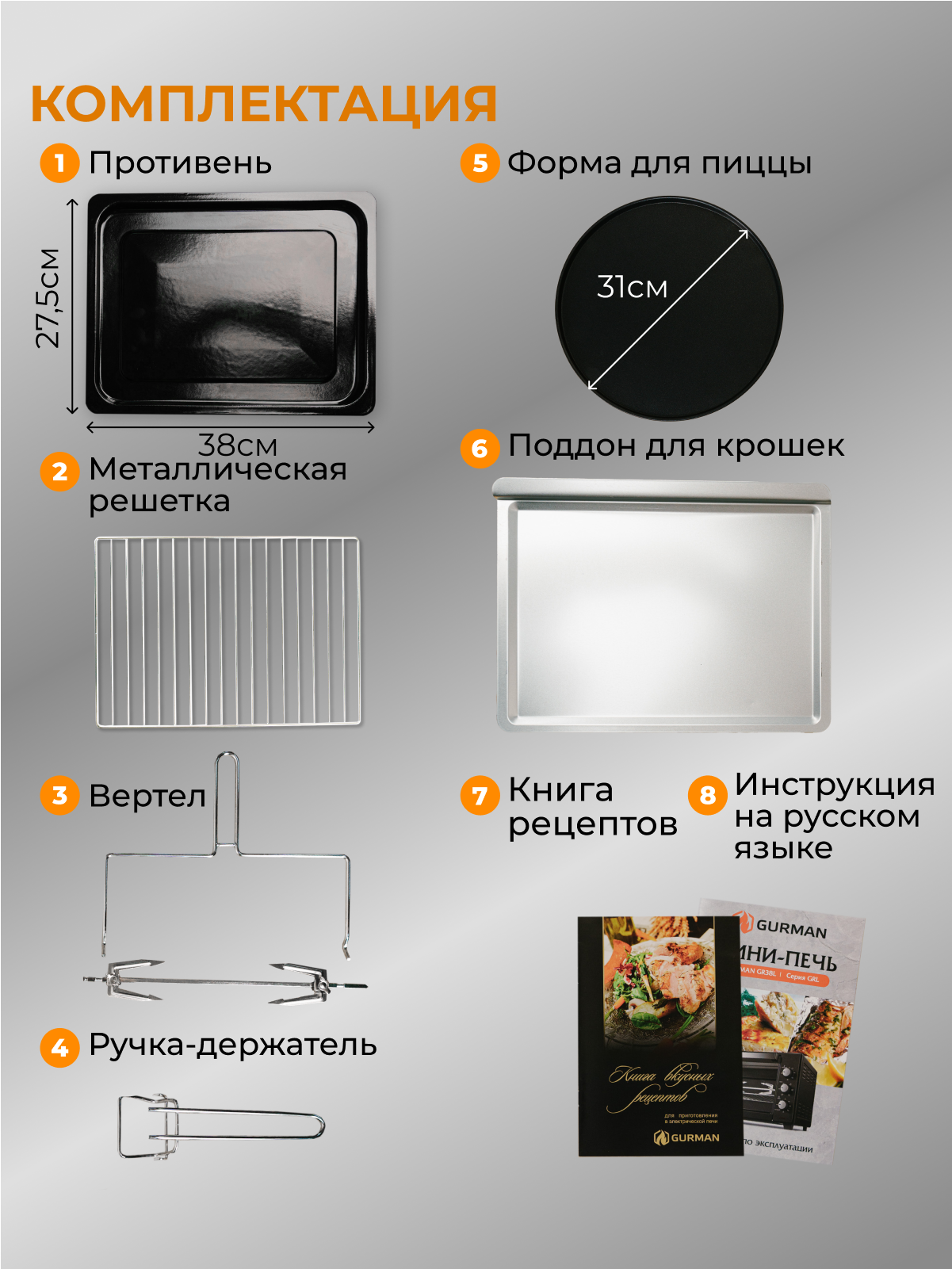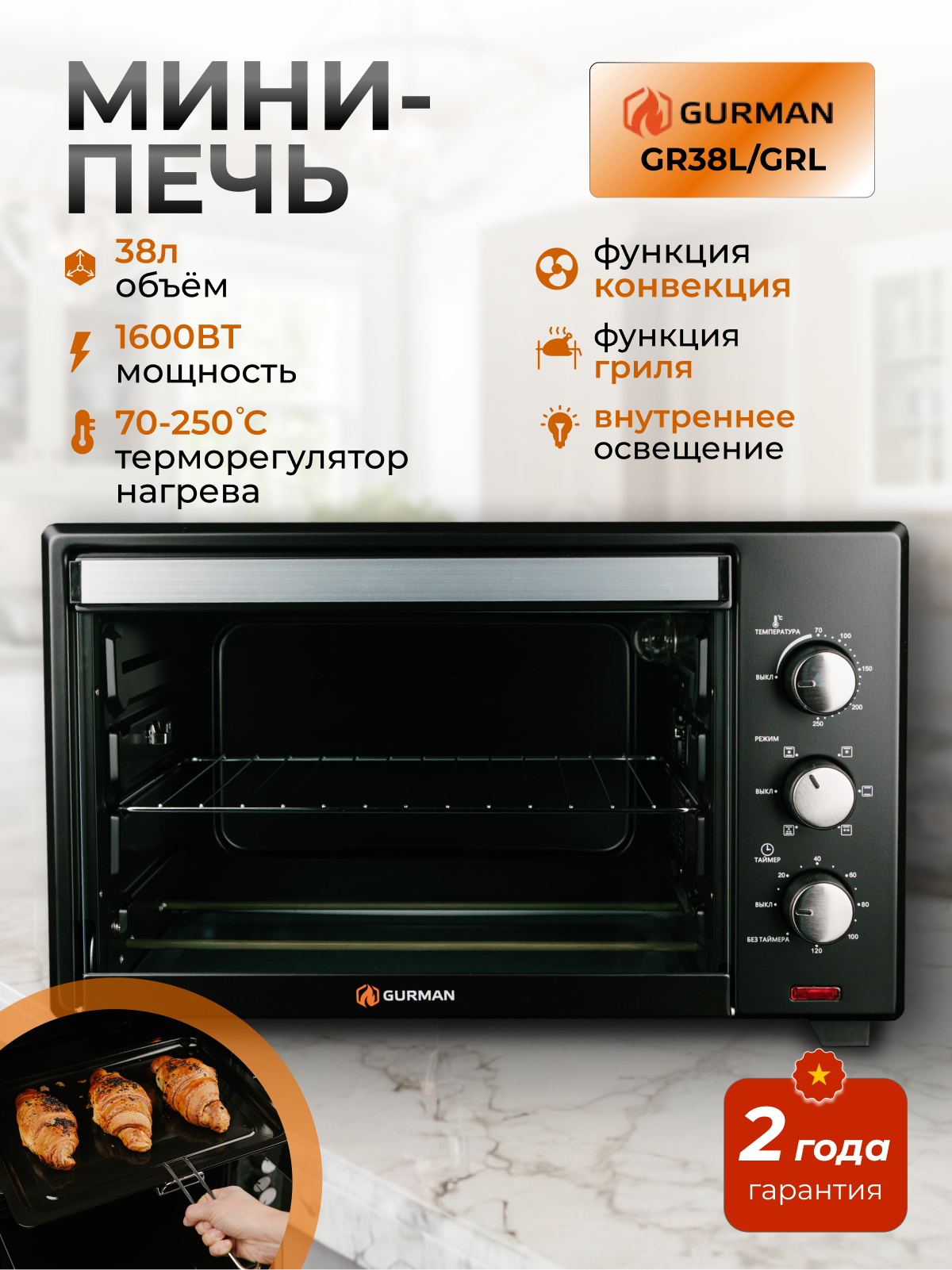 Купить Мини-печь электрическая GR38L с конвекцией и грилем с доставкой по всей России. Мини-печь электрическая GR38L с конвекцией и грилем: сравнение цен, характеристики, фото, актуальное наличие и цены.