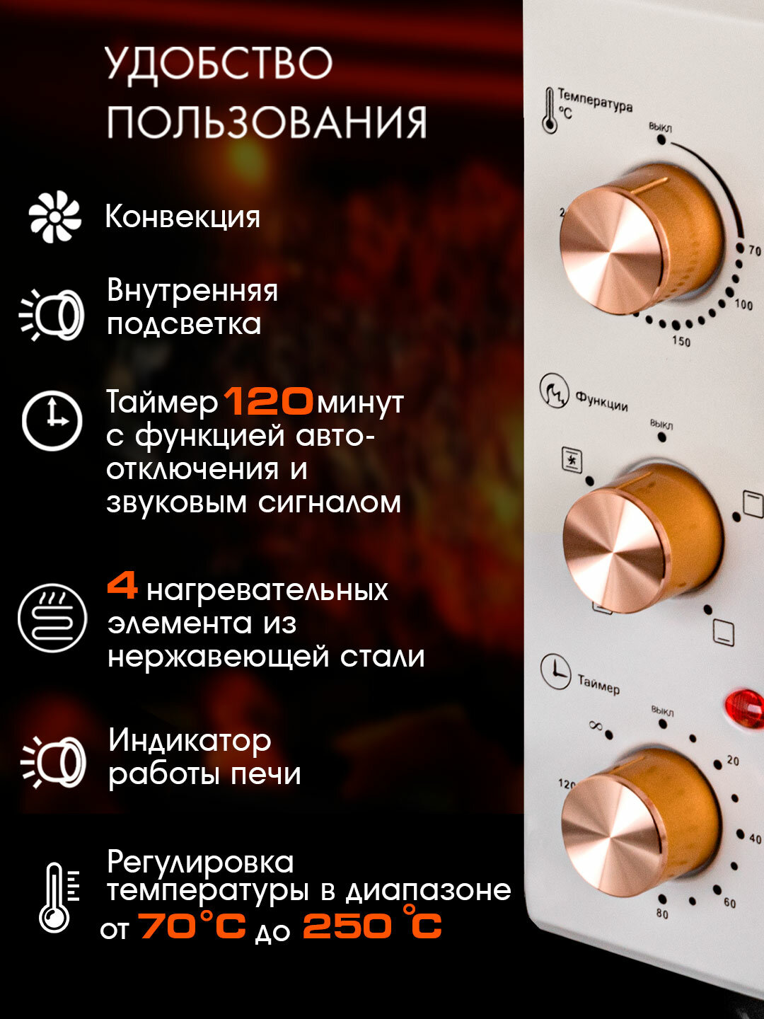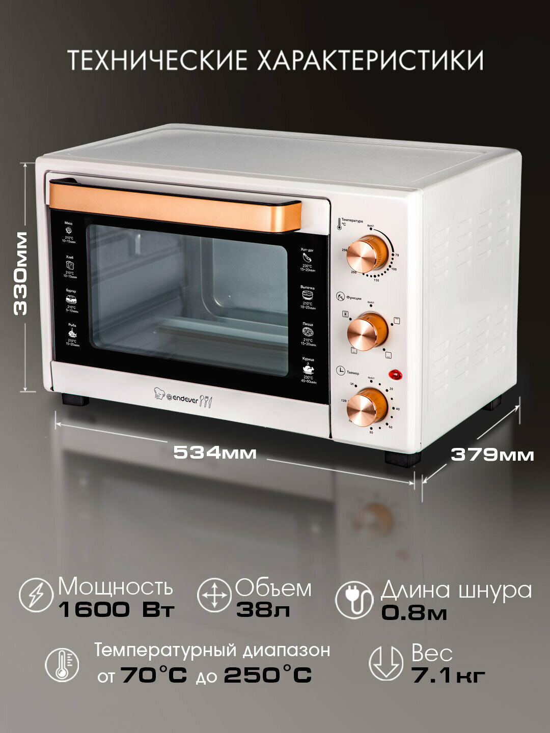 | Режимы работы | верхний нагрев, верхний+нижний нагрев, нижний нагрев |