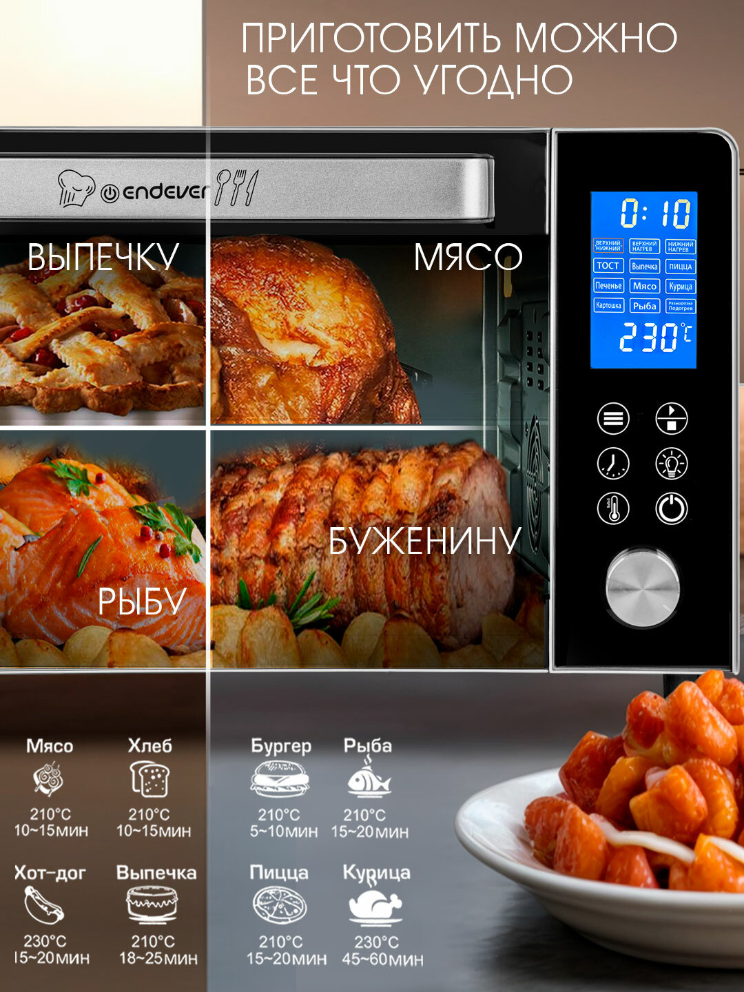 Мини-печь Endever Danko-4039, сенсорное управление, 9 программ, гриль, вертел, 35 л: сравнение цен, характеристики, фото, актуальное наличие и цены.