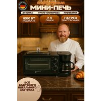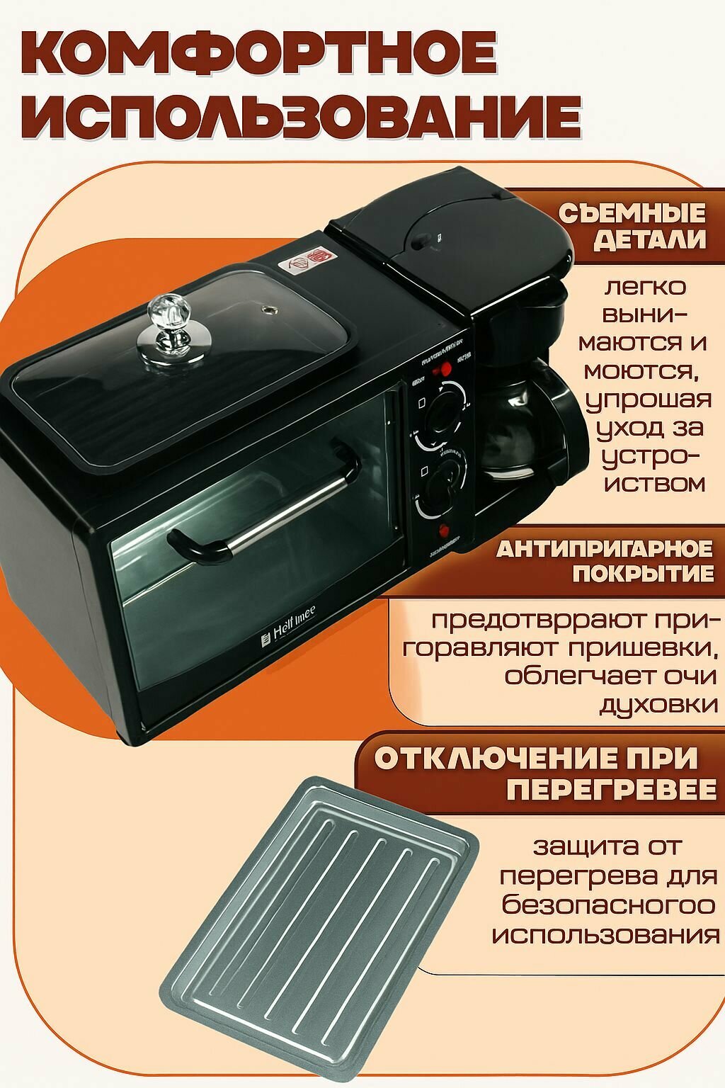 Мини-печь Hoffmans 3в1, электрическая, механическое управление, 3 режима, черная с кофеваркой: сравнение цен, характеристики, фото, актуальное наличие и цены.