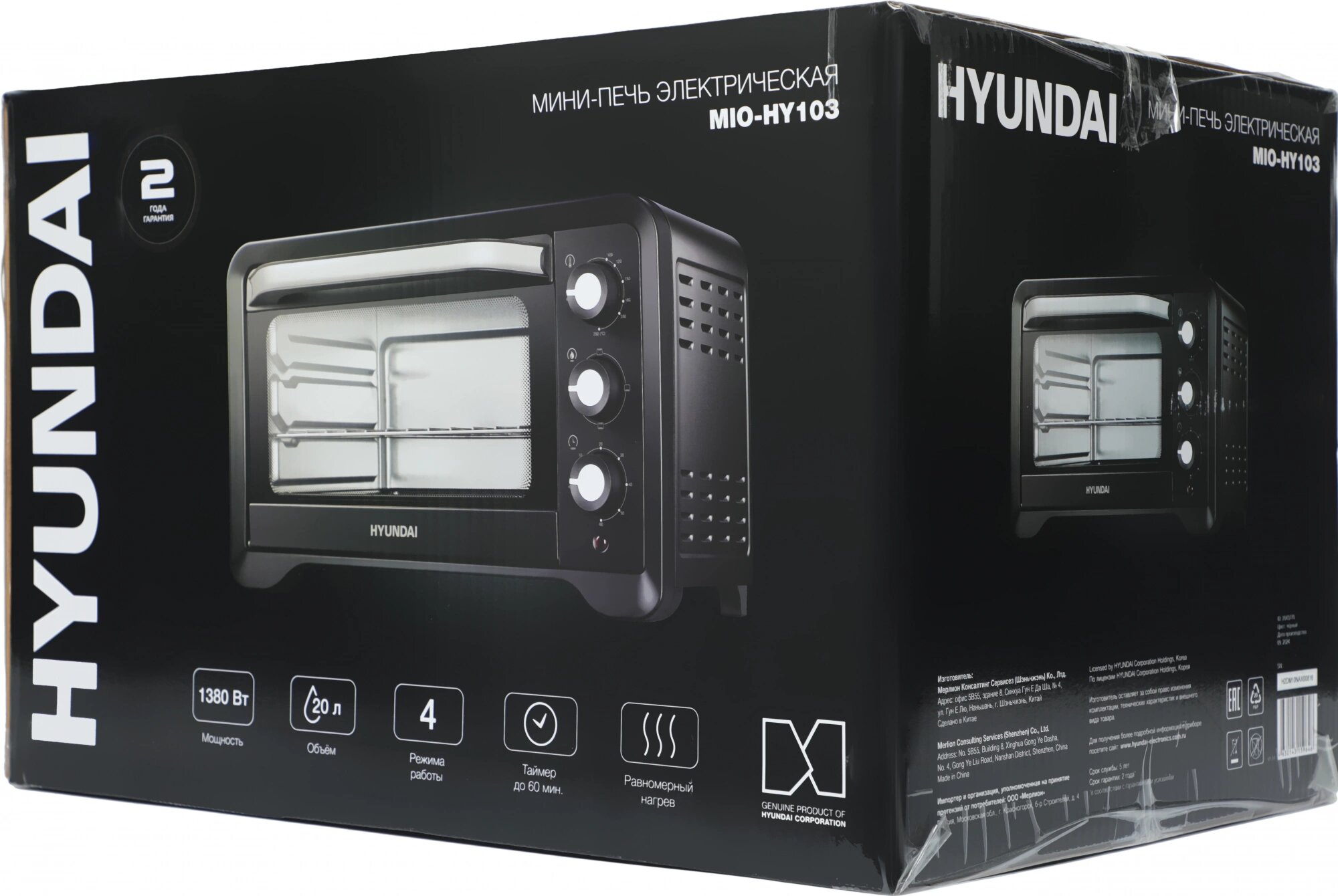 Купить Мини-печь Hyundai MIO-HY103 20л. 1380Вт черный, Световой индикатор, Таймер, Гриль, Съемная решетка в комплекте с доставкой по всей России.