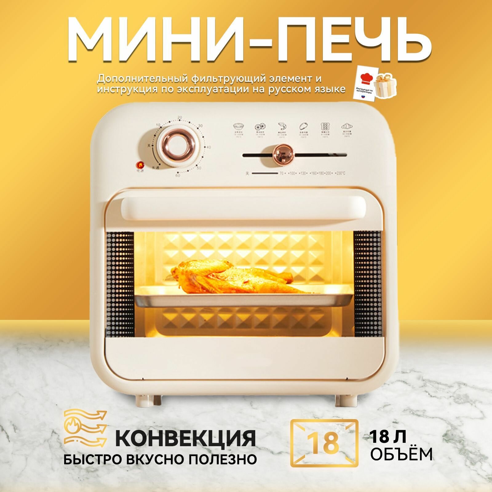 Купить Мини-печь, конвекция, гриль, вертел, 18 литров, мощность 1300 Ватт, белый с доставкой по всей России. Мини-печь, конвекция, гриль, вертел, 18 литров, мощность 1300 Ватт, белый: сравнение цен, характеристики, фото, актуальное наличие и цены.