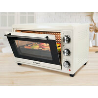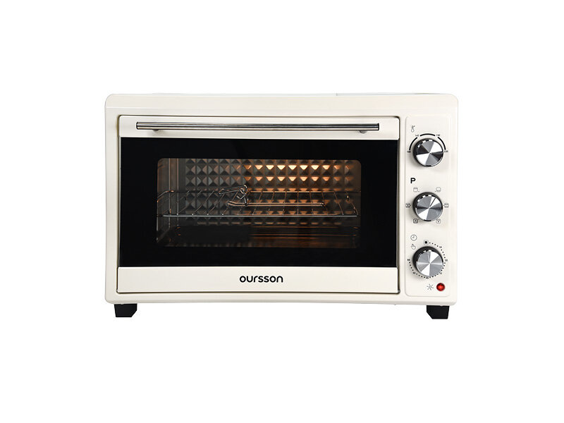 Мини-печь оснащена механическим управлением и таймером с автоматическим отключением, который издает звуковой сигнал по окончании работы. В комплект поставки входят поддон для сбора крошек, противень, решётка и ухват.