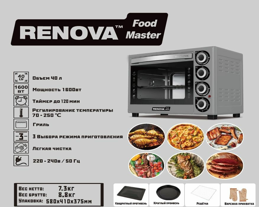 Купить Мини-печь RENOVA MO-40GTS1 с доставкой по всей России. Мини-печь RENOVA MO-40GTS1: сравнение цен, характеристики, фото, актуальное наличие и цены.
