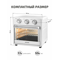 Купить Мини печь – аэрогриль, духовка настольная с конвекцией HOTTER HX-16, 16 литров, 5 режимов, 1200 Вт, белая с доставкой по всей России.