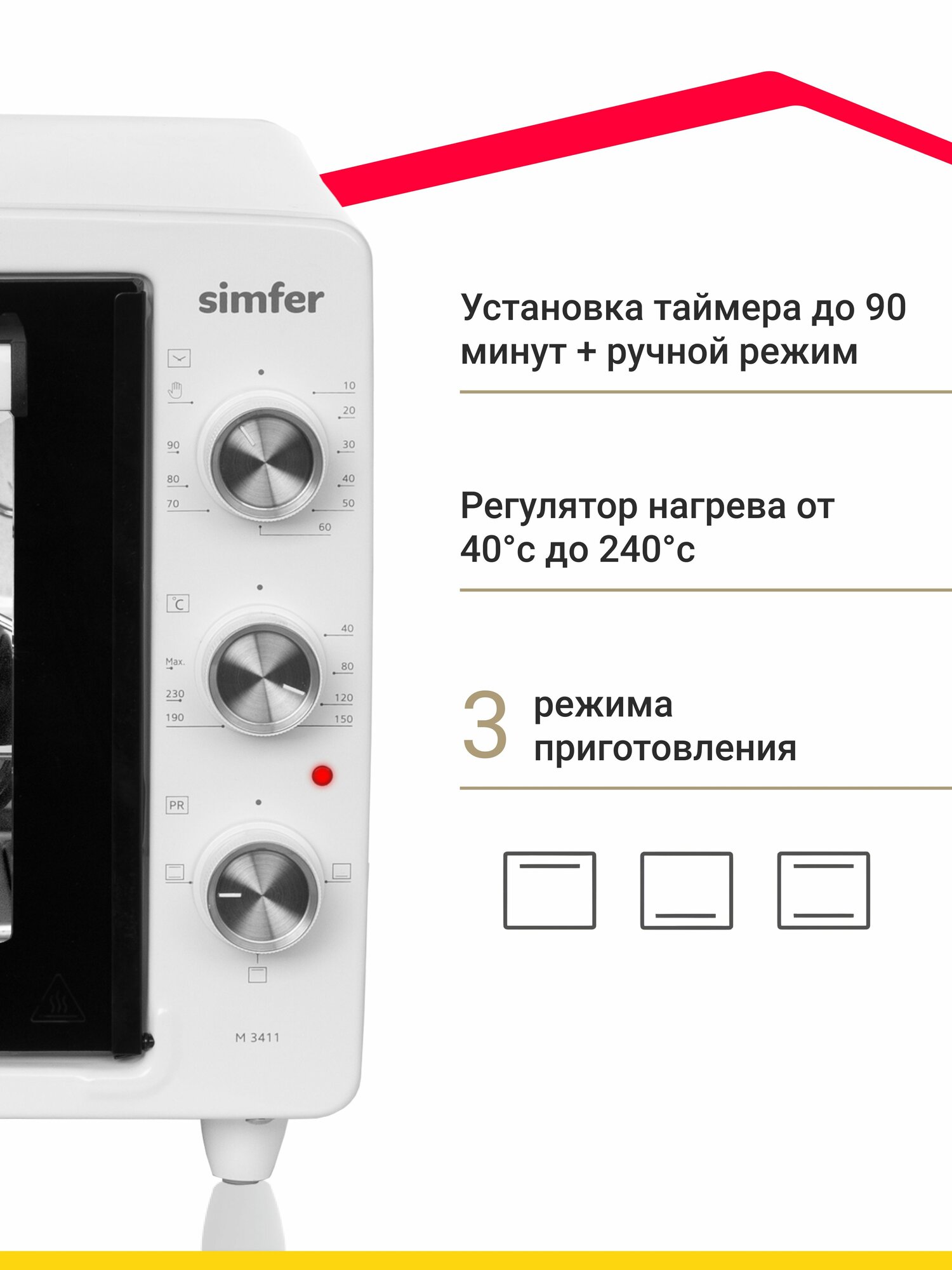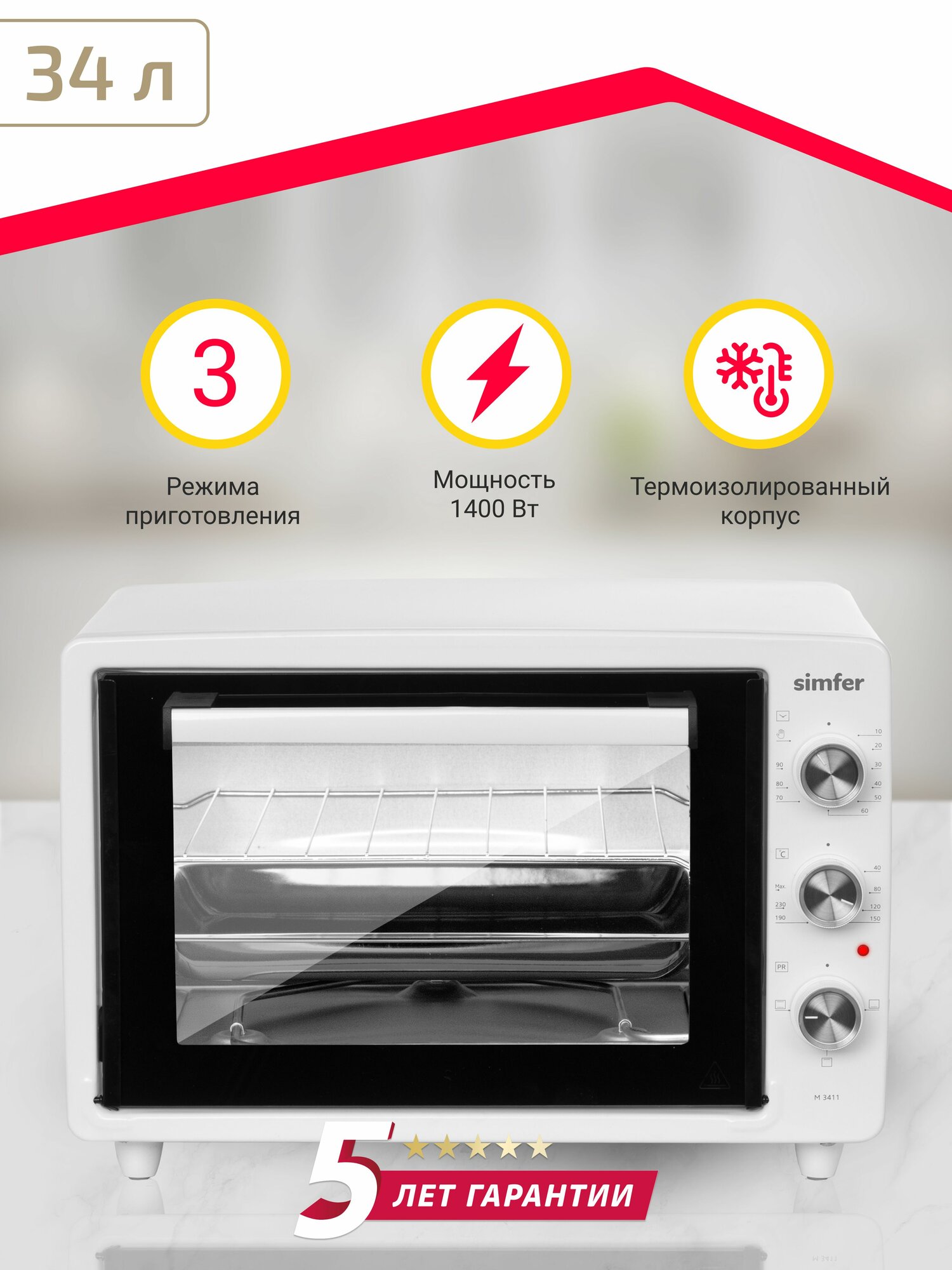 Мини печь Simfer, 3 режима работы, 34л, противень хромированная решетка, таймер, 5 ЛЕТ гарантия, турция: сравнение цен, характеристики, фото, актуальное наличие и цены.