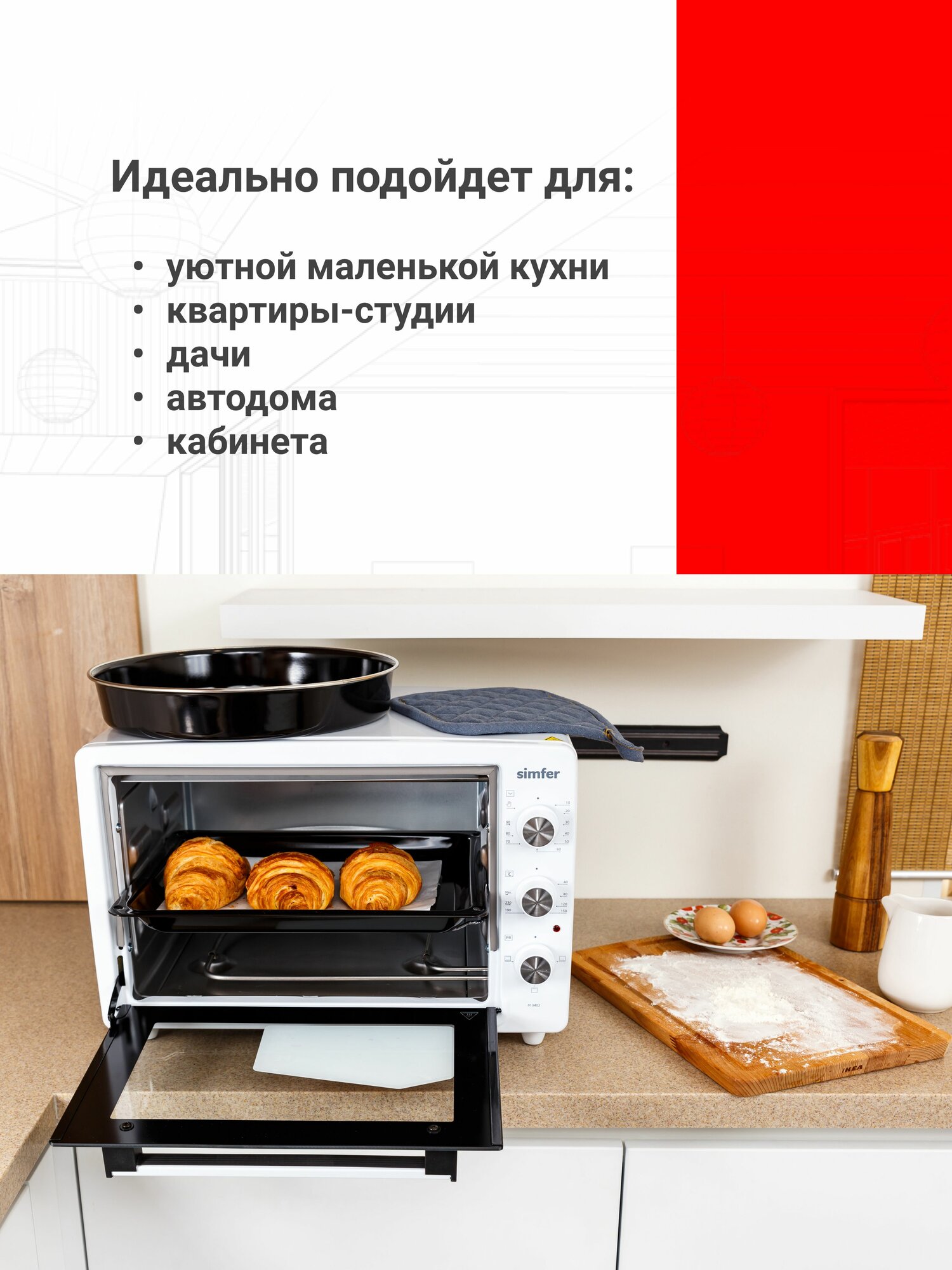 Купить Мини печь Simfer 34 литра, 3 режима, 2 противня, хромированная решетка, таймер, 5 ЛЕТ гарантии, турция с доставкой по всей России.