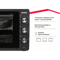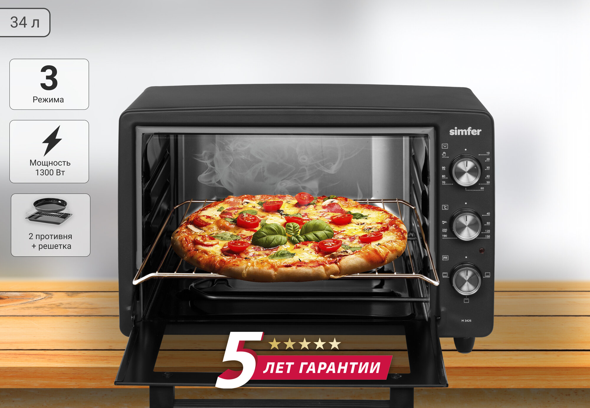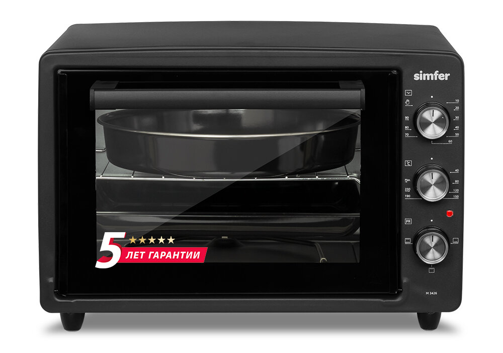 Купить Мини печь Simfer, 3 режима, 34 литра, противень и хромированная решетка, 5 лет гарантии, антрацит с доставкой по всей России.