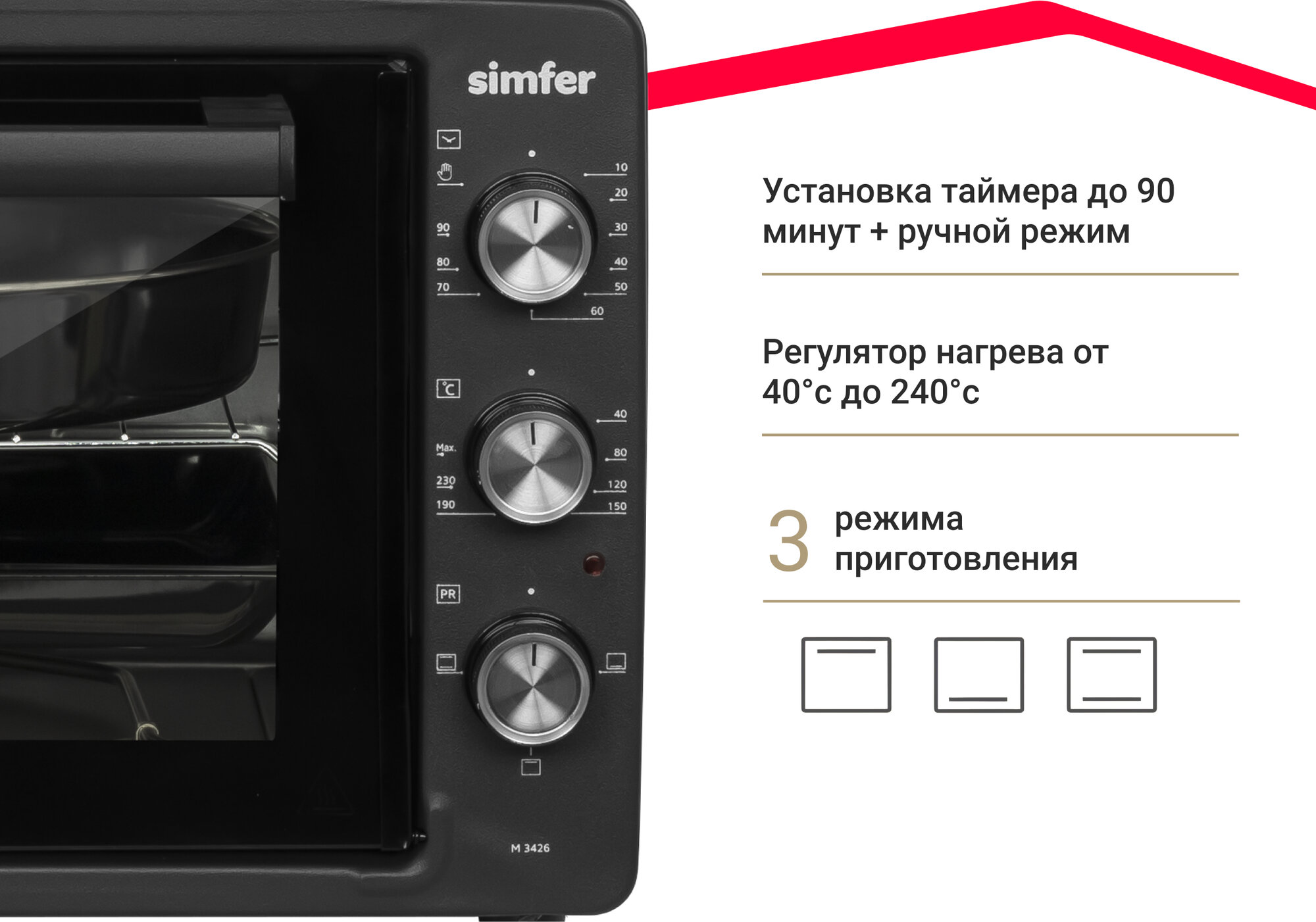 Мини печь Simfer, 3 режима, 34 литра, противень и хромированная решетка, 5 лет гарантии, антрацит: сравнение цен, характеристики, фото, актуальное наличие и цены.