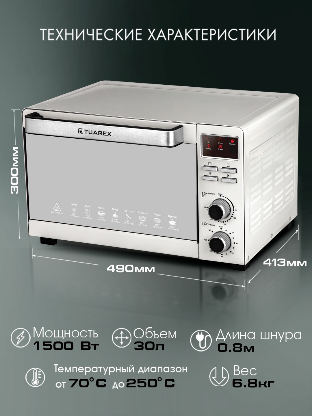 Купить Мини печь Tuarex TK-5031, конвекция, LED-дисплей, 30 л, 1500 Вт, белая с доставкой по всей России. Мини печь Tuarex TK-5031, конвекция, LED-дисплей, 30 л, 1500 Вт, белая: сравнение цен, характеристики, фото, актуальное наличие и цены.