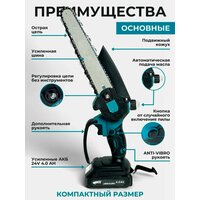 Купить Мини-пила аккумуляторная, 24В, 6 дюймов, с маслоподачей, прорезиненная рукоятка, синяя с доставкой по всей России.