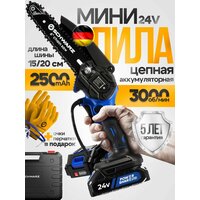 Цепная пила - 1 шт Аккумулятор - 2 шт Блок питания - 1 шт Шина с логотипом 10 см - 1шт Шина с логотипом 15 см - 1шт Цепь 10 см - 1 шт Цепь 15 см - 1 шт Ключи для сборки - 1 набор Бутылка для масла - 1 шт Очки - 1 шт Перчатки - 1 шт Инструкция - 1 шт Вкладыш - 1 шт Кейс