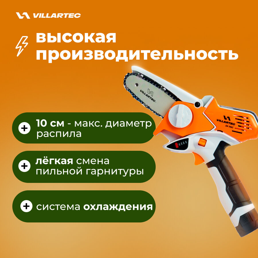 Мини пила аккумуляторная цепная сучкорез (без аккумулятора и зарядного устройства) VILLARTEC SA1462S: сравнение цен, характеристики, фото, актуальное наличие и цены.
