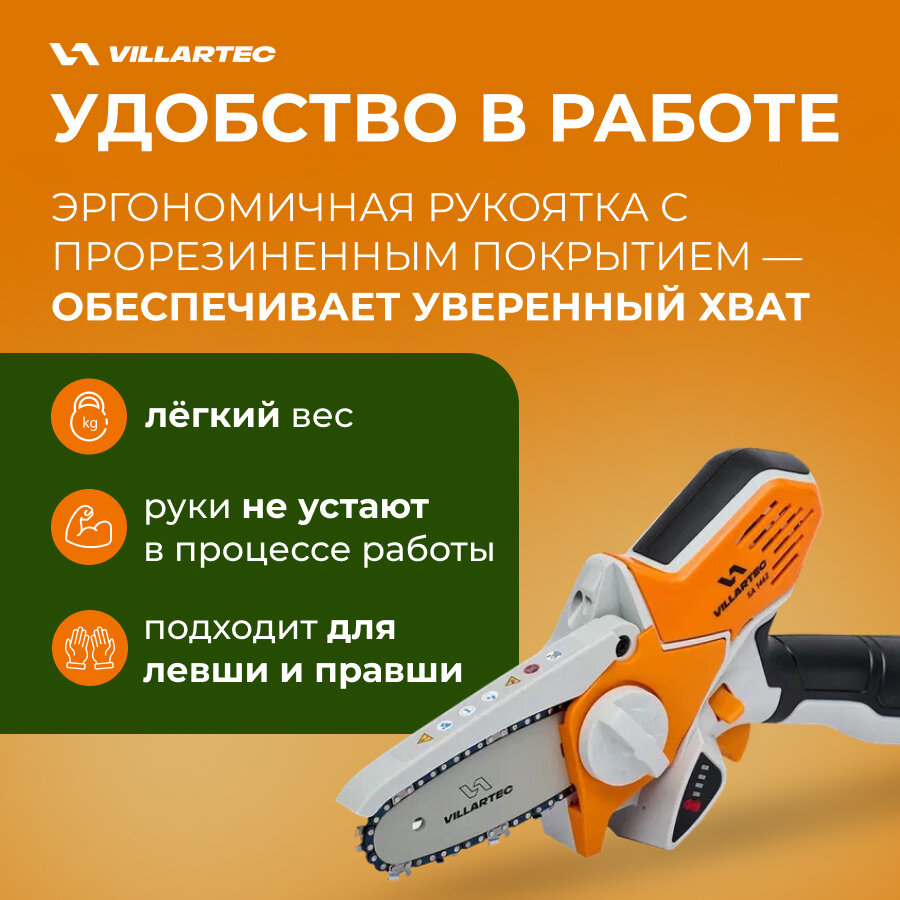 Купить Мини пила аккумуляторная цепная сучкорез (без аккумулятора и зарядного устройства) VILLARTEC SA1462S с доставкой по всей России.