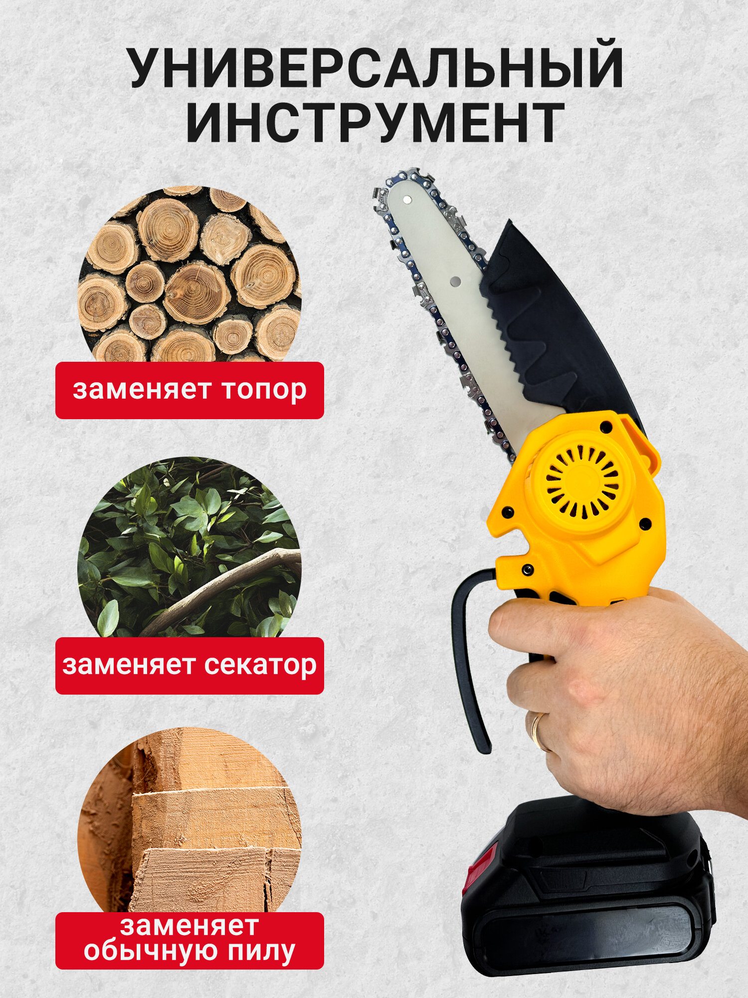 Купить Мини Пила садовая аккумуляторная цепная электро сучкорез секатор с доставкой по всей России.
