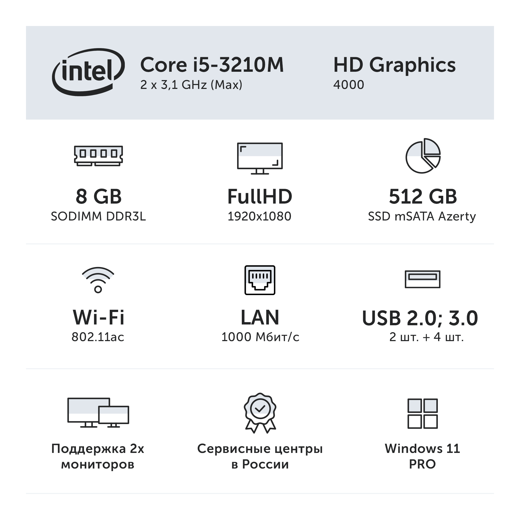 - Процессор Intel Core i5 обеспечивает превосходную производительность для выполнения повседневных задач и работы с офисными приложениями.