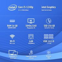 Мини ПК Azerty AZ-0029 (Intel i5-1240p 12х3.3 ГГц, 16 Гб DDR4, 256 Гб SSD, Wi-Fi, BT)