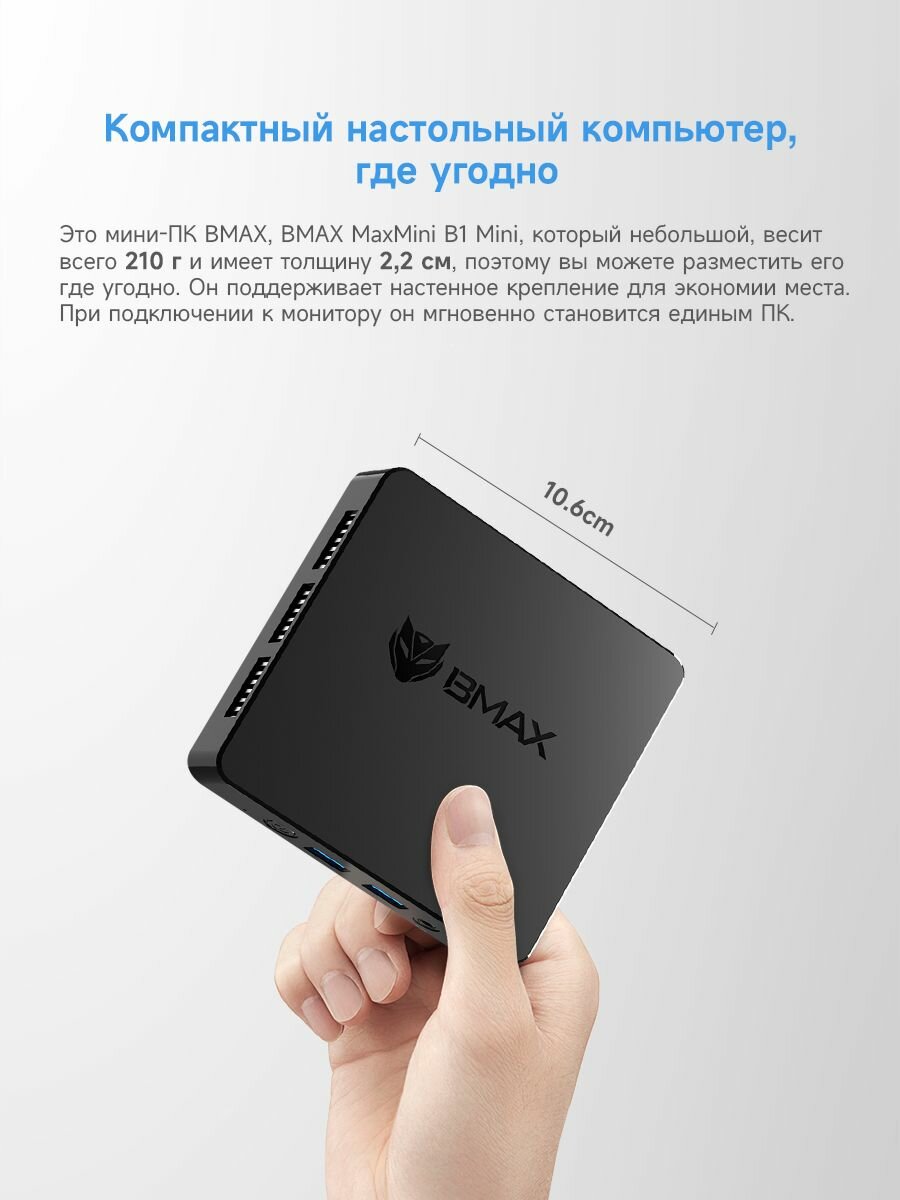Купить Mini Pc BMAX B1 Mini, Intel Gemini Lake N4000, RAM 8 ГБ, ROM 128 ГБ, Intel UHD Graphics 600, Windows 11 Pro, Чёрный с доставкой по всей России.